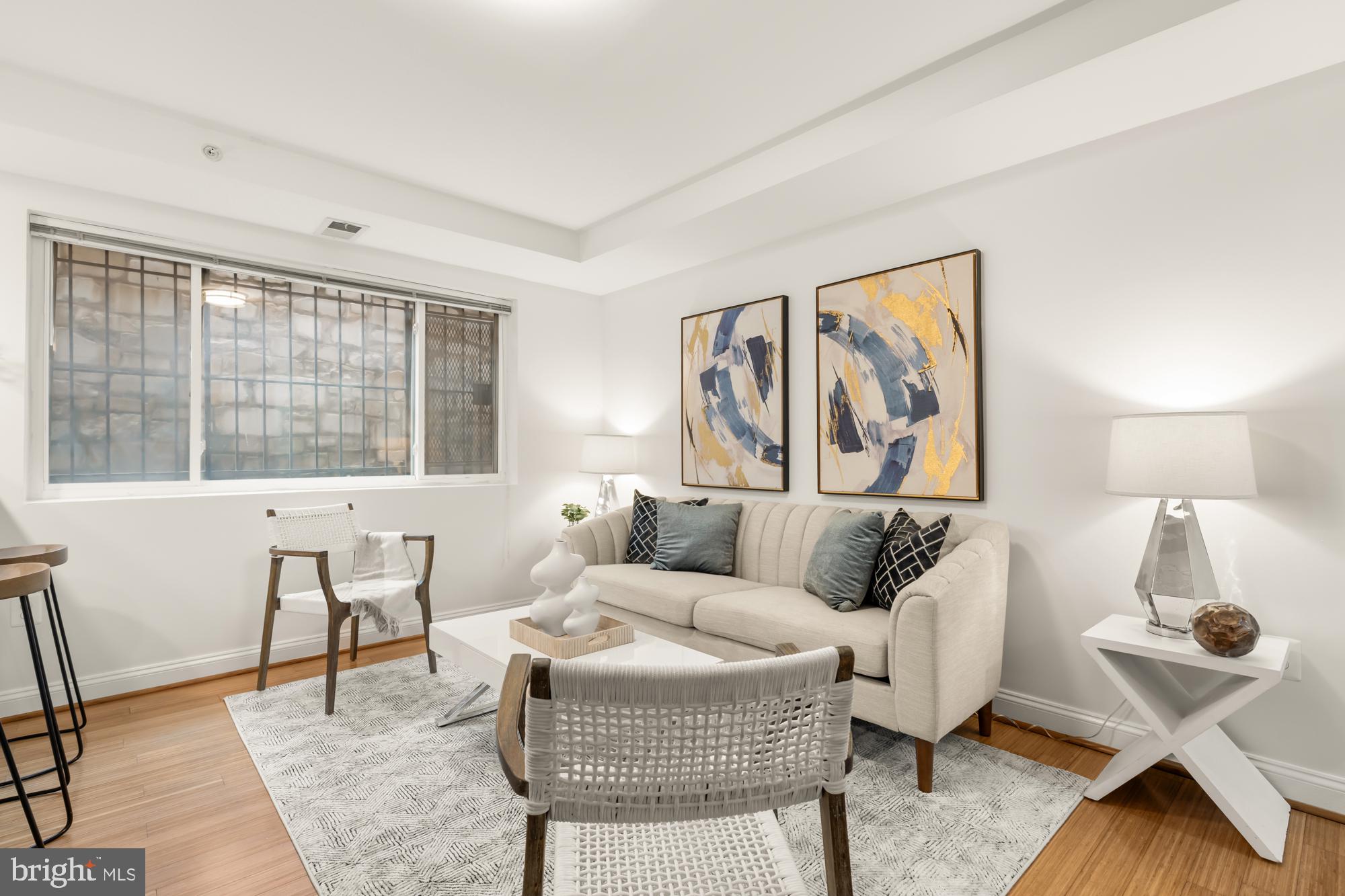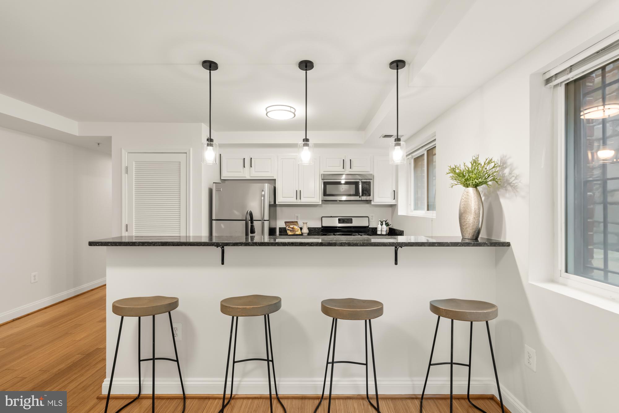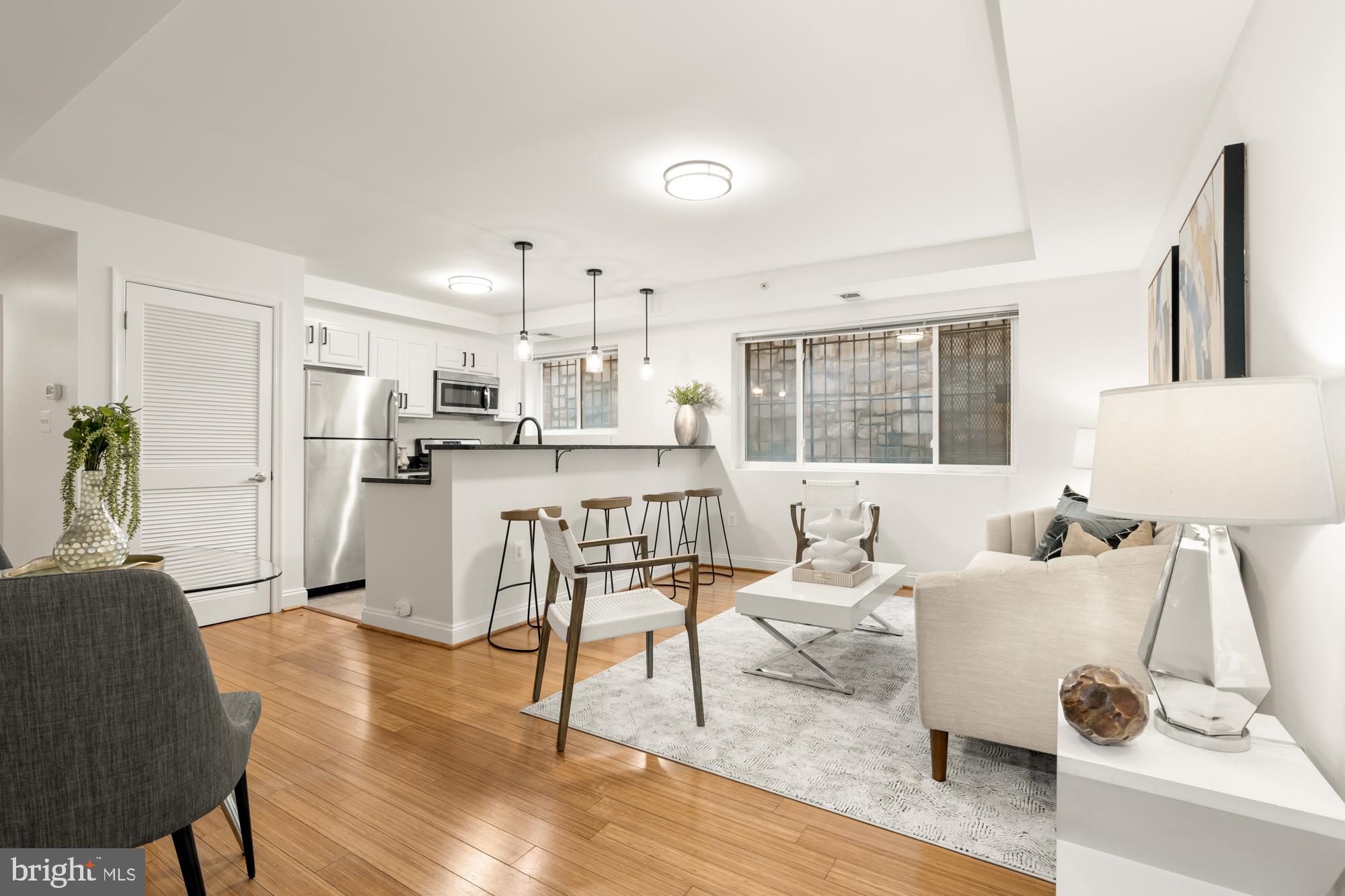 Welcome to your modern oasis at 804 Taylor Street Northwest, Unit 105, in the vibrant heart of Petworth, Washington, DC. This impeccable one-bedroom, one-bathroom residence boasts a pristine 616 square feet of thoughtfully designed living space. Refreshed and adorned with new fixtures, the home radiates with sophistication, featuring bamboo floors, sleek granite countertops, and stainless steel appliances.